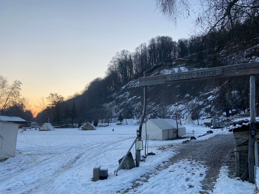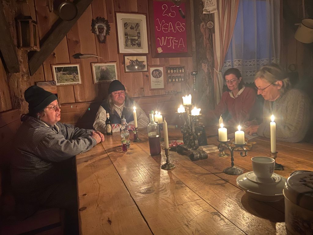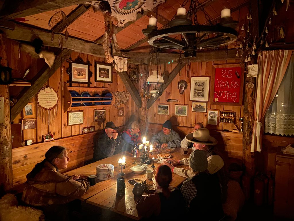 Vom 27. Dezember 2025 bis zum 8.Jänner 2026 fand wieder das alljährliche Wintercamp in der Canyon - Ranch statt. Viele unsere Freunde erwiesen uns die Ehre und bauten ihre Zelte in der Canyon - Ranch auf. Auch Frau Holle schickte uns heuer ausreichend Schnee und somit hatten wir eine wunderbare Kullisse. Da der Fluß durch die sehr tiefen Temperaturen ( bis - 19 Grad ) meist zugefroren war, waren unsere Ausfahrten am Sulmriver eher spärlich. Trotzdem konnten wir einige schöne Stunden mit dem Kanu erleben. Aktivitäten wie zum Beispiel eine Fackelwanderung, oder Maroni braten mit Glühwein und Whiskeypunsch vor der Backwood Lodge, ließen die Tage nur so dahin fliegen. Das Highlight war selbstverständlich wieder Lone Walker mit seinen Brandpfeilen. Am Silvesterabend ließ er wieder kurz vor Mitternacht die Canyon - Ranch mit seinen Brandpfeilen die Ranch in einem besonderen Licht erstrahlen ,und begrüßte damit das neue Jahr. In der Backwood Lodge herrschte immer gute Stimmung und so waren 12 Tage schneller vorbei als uns lieb war. Vielen Dank an alle Teilnehmer, und ebenso großen Dank an die Familie Baumann für die schöne Zeit auf ihrem Gelände. So long Friends!